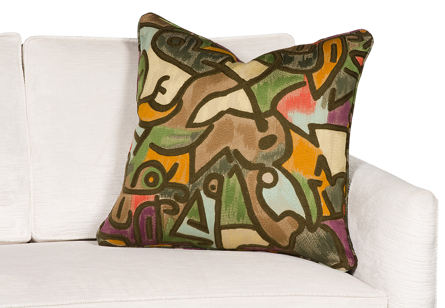 Pillows can enhance any room and add color, especially when made from exclusive materials. Paul Robert offers pillows in more than 800 different materials. Some of these materials are designed with unique construction features that make them not suitable for entire pieces of furniture, so they are not sampled to our retail partners. These materials do however result in exquisite pillows and are displayed here. We offer 20 or 23 inch square pillows, and 16 by 23 inch rectangular pillows in these exclusive materials. Find detailed information on all of our fabrics here.