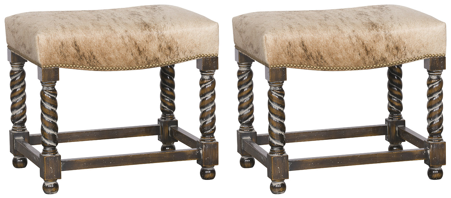 The turned spiral legs on our new Tally ottoman are often described as a Barley Twist. The English often used this term because it resembles a twisted stick of barley sugar. Also available with tufted top, style 92-11 TUFT.